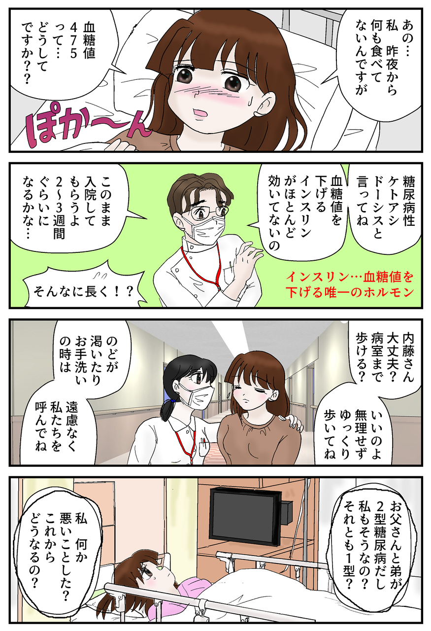 以下は昔描いたエッセイ漫画(すべて私の実体験に基づいたもの)です。漫画家になる前に描いたものなので絵が見苦しい点はすみません。もし少しでも糖尿病に興味がある方はぜひお読みください!