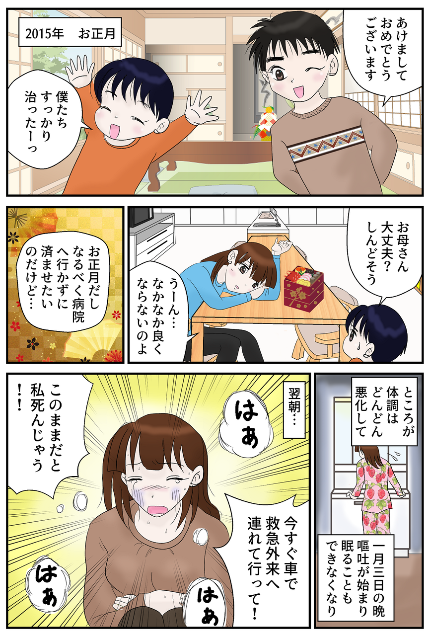 当時37歳だった私はこれまでにないほどの体調の悪化を感じており「このままだと死ぬかもしれない!」と思って夫に頼んで車で救急外来へ連れて行ってもらいました。